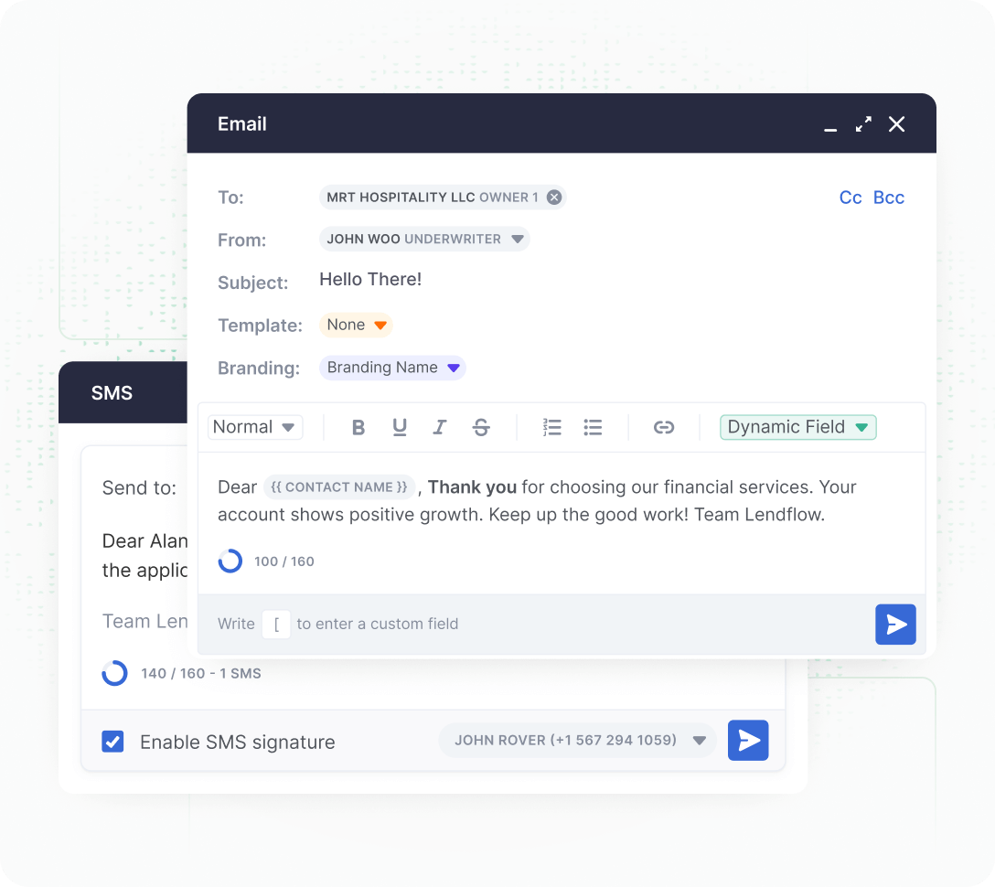 AI-powered Voice, Email, SMS, and Chat tools integrate seamlessly with your lending workflows, engaging customers automatically.